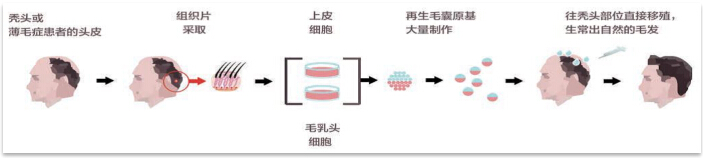 配合毛囊干细胞从毛乳头细胞「毛囊原基」、原本不长毛的地方也能够生出毛发的世界最先端毛髪再生治疗。